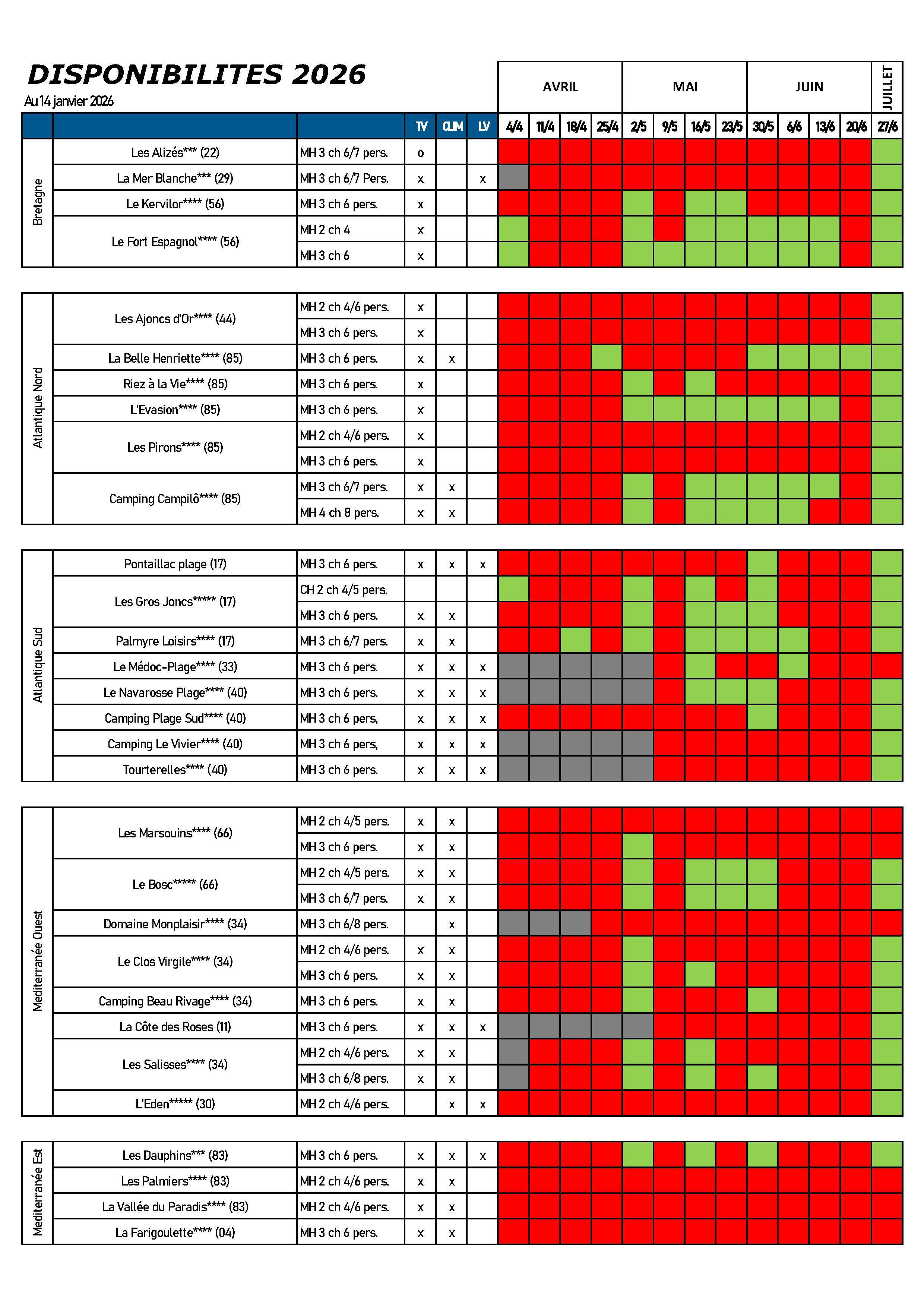 Locations MONDIAPIC 2026, les dispos au 14 janvier