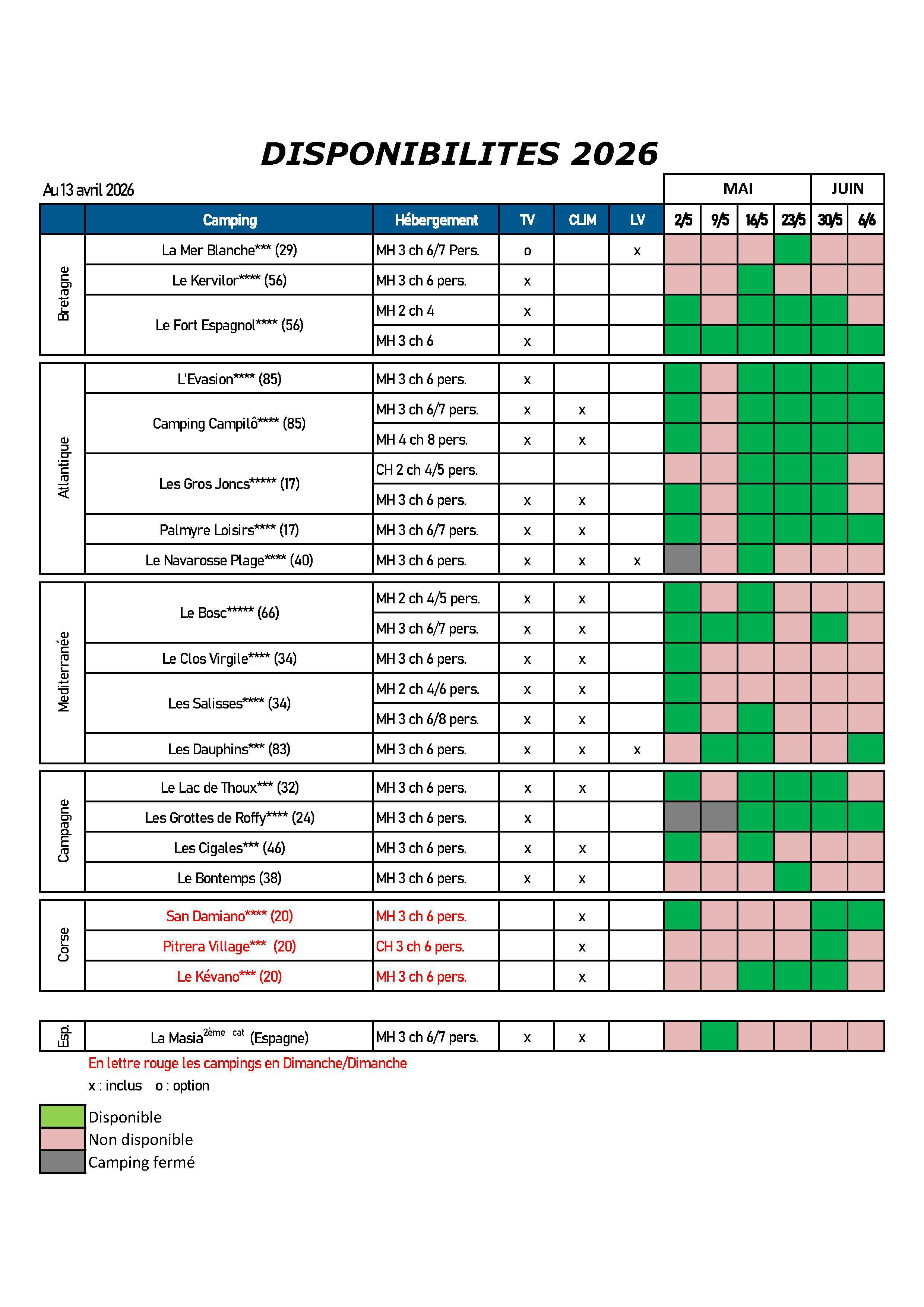 Locations MONDIAPIC 2026, les dispos au 13 avril