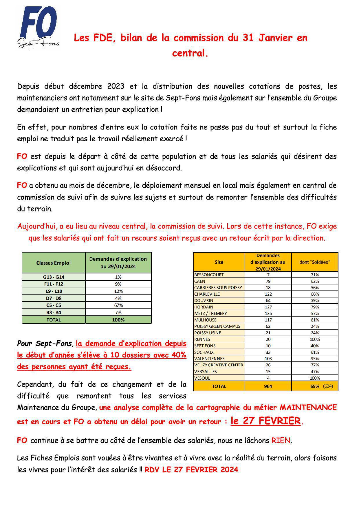 les FDE, le suivi de la commission centrale.