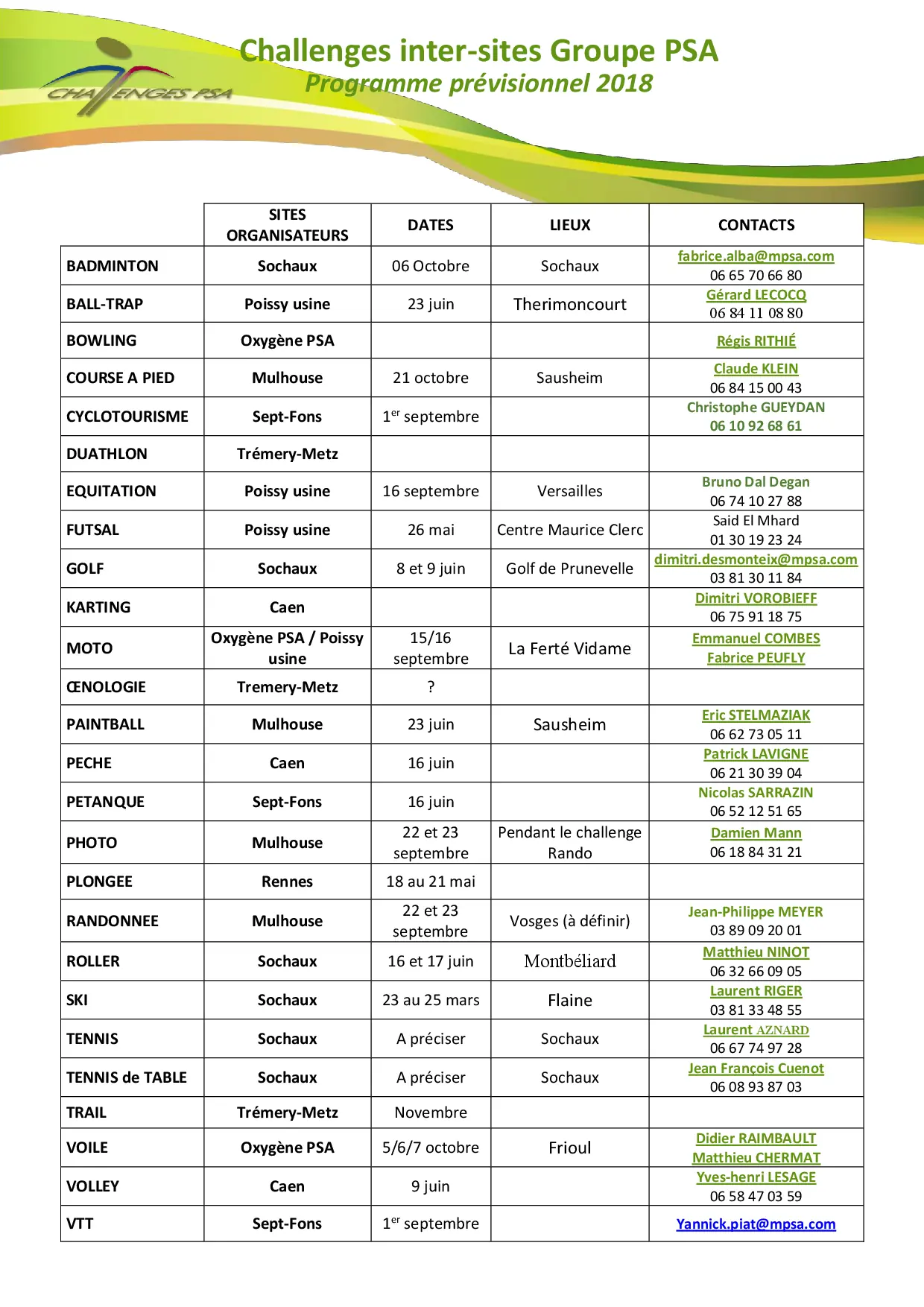 Programme prévisionnel 2018