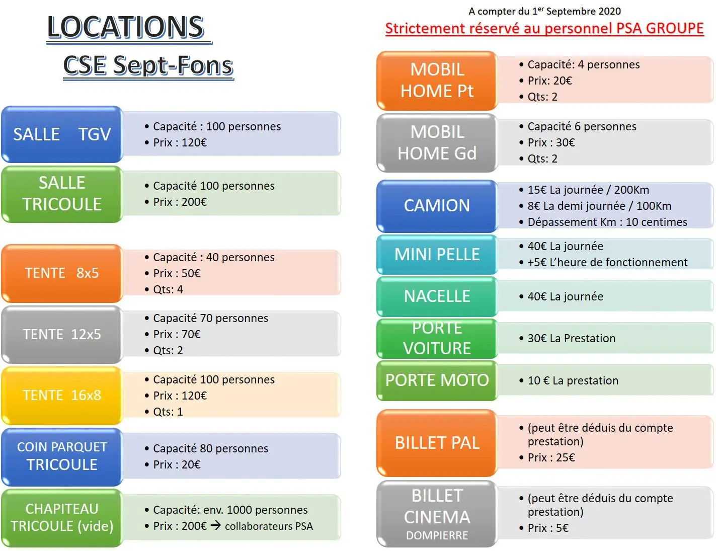 ...le CE met à votre disposition des structures de différentes grandeurs ainsi que des salles de réception à des tarifs préférentiels.