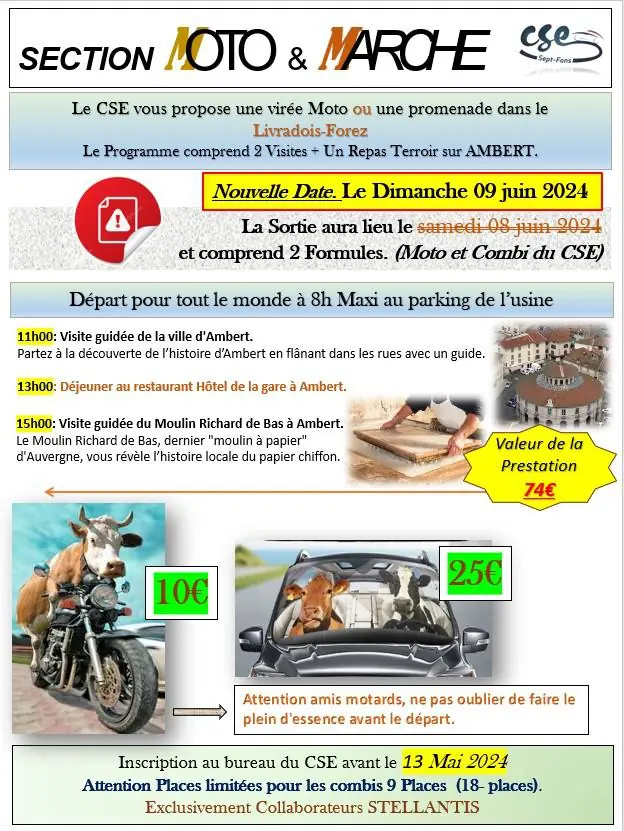 Sortie moto 9 juin 2024, il reste des places !!😉