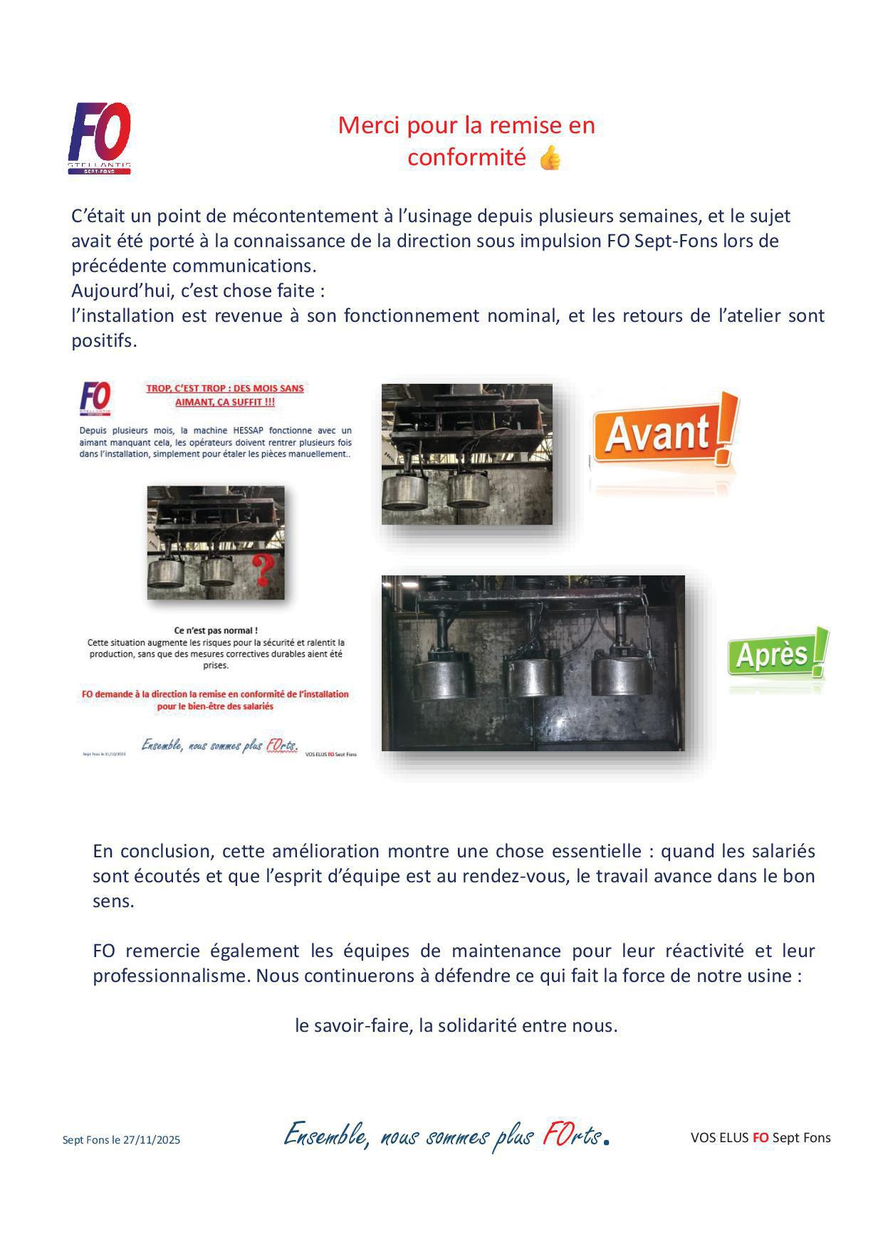 Les actions réalisées à l'usinage, merci aux contributeurs👏