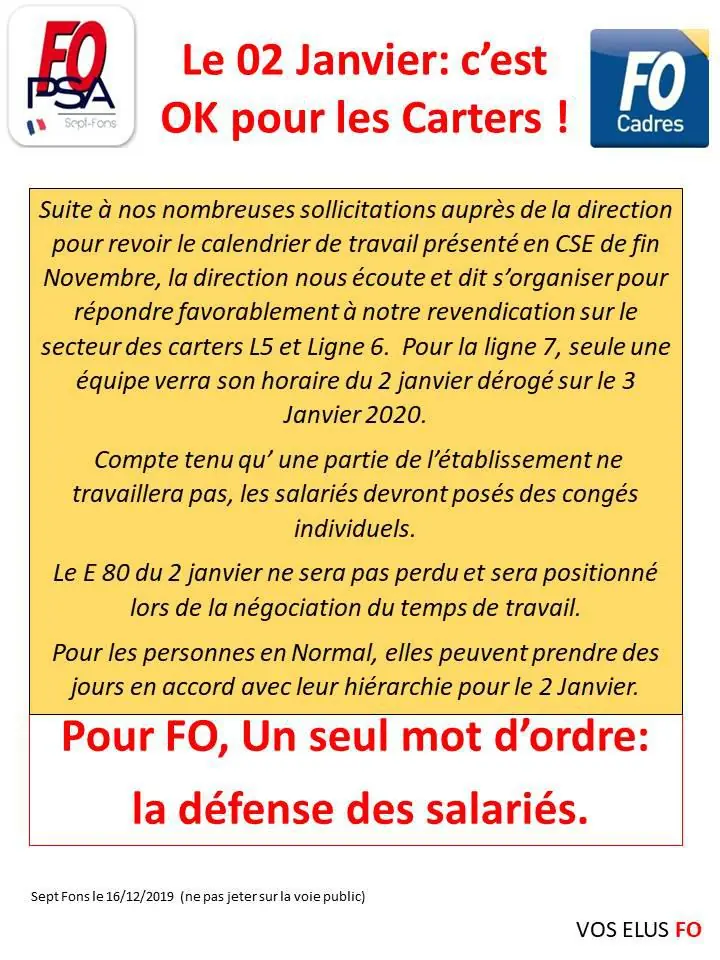 Vos élus FO, vous souhaitent une Bonne année 2020