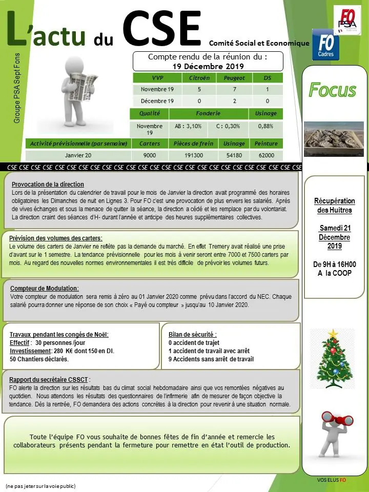 Compte rendu CSE du 19 Décembre 2019